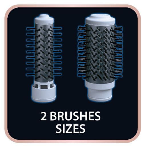 Dvije veličine četkica prilagođene su različitim duljinama kose. S manjom možete udobno oblikovati kratku kosu i lokne.