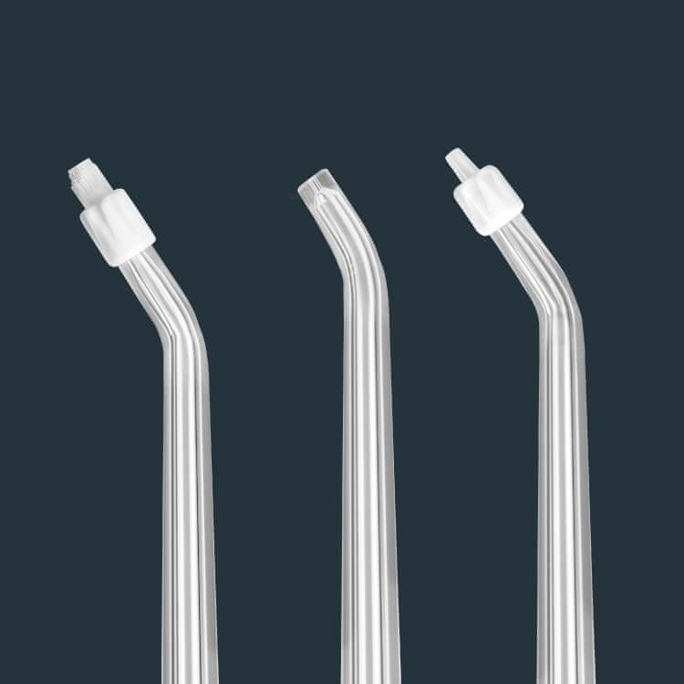 Set uključuje tri različita nastavka koji vam omogućuju da kantu za zalijevanje prilagodite svojim individualnim potrebama. Univerzalni obični vrh pogodan je za svakodnevno čišćenje. Nježni vrh namijenjen je osobama s osjetljivim desnima, pružajući im nježno, ali učinkovito čišćenje. Ortodontski vrh je posebno dizajniran za lakše čišćenje oko bravica i žica u ortodontskim aparatima.