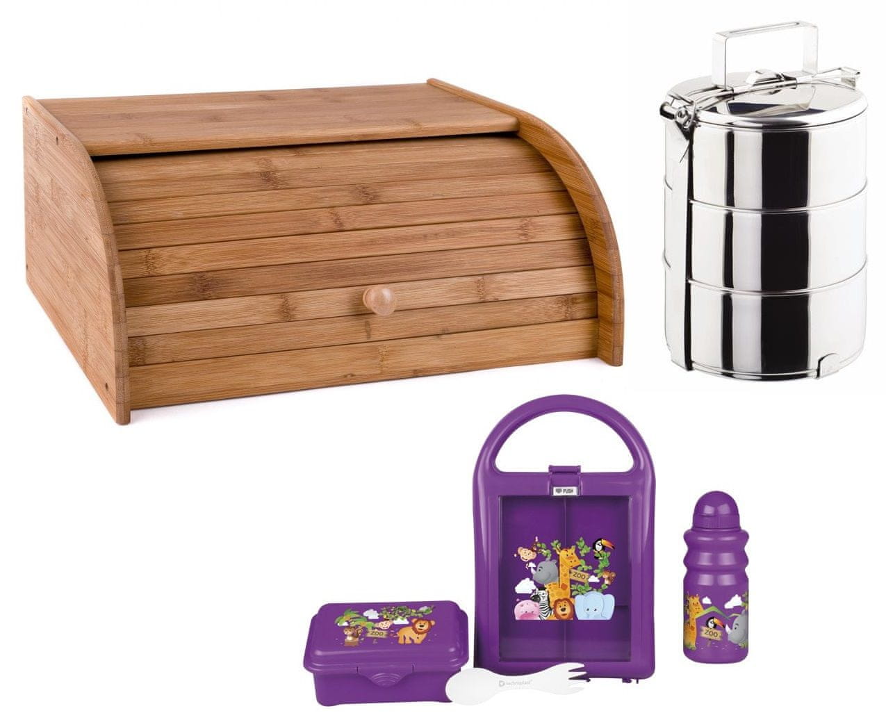 Kutija za ručak / užinu – dvostruka posuda s pretincima, pribor za jelo (plastična žlica, vilica), sigurno za mikrovalnu pećnicu, držač za nošenje, plastični materijal, volumen 1200 ml