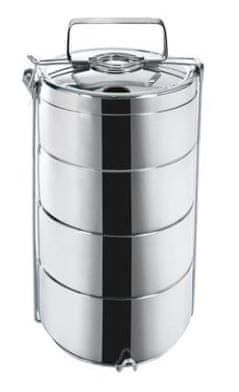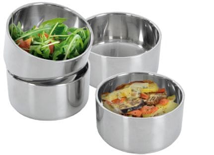 4-dijelna zdjelica od zvjerinjaca od nehrđajućeg čelika, pogodna za nošenje hrane i pripremljenih jela. S dvoslojnim zidovima za toplinsku izolaciju sadržaja.