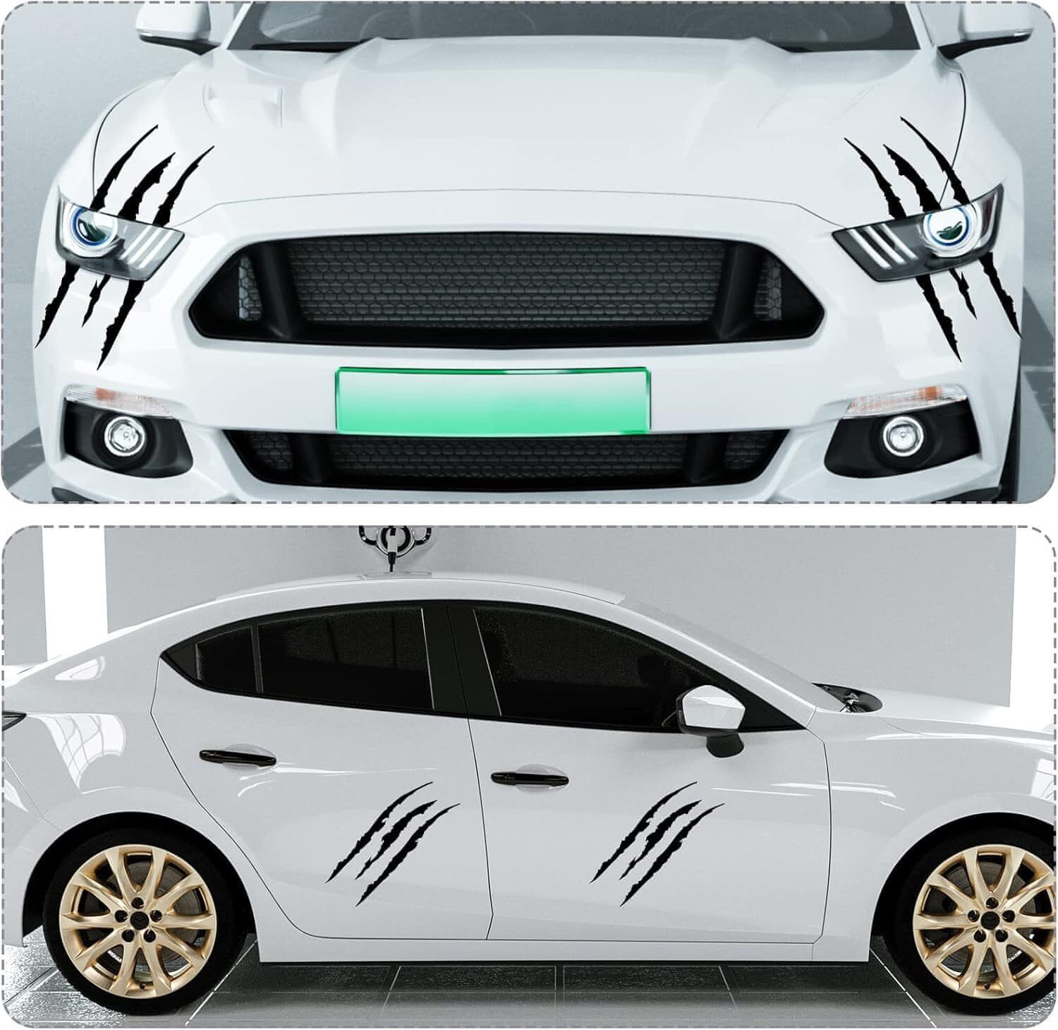 Ove naljepnice dizajnirane su za ukrašavanje svih vrsta automobila, terenskih vozila, kamiona i više, dajući im agresivan i jedinstven izgled. Bilo na prednjim svjetlima ili bočnoj strani vašeg vozila, dodaju dašak osobnosti koji se ističe.