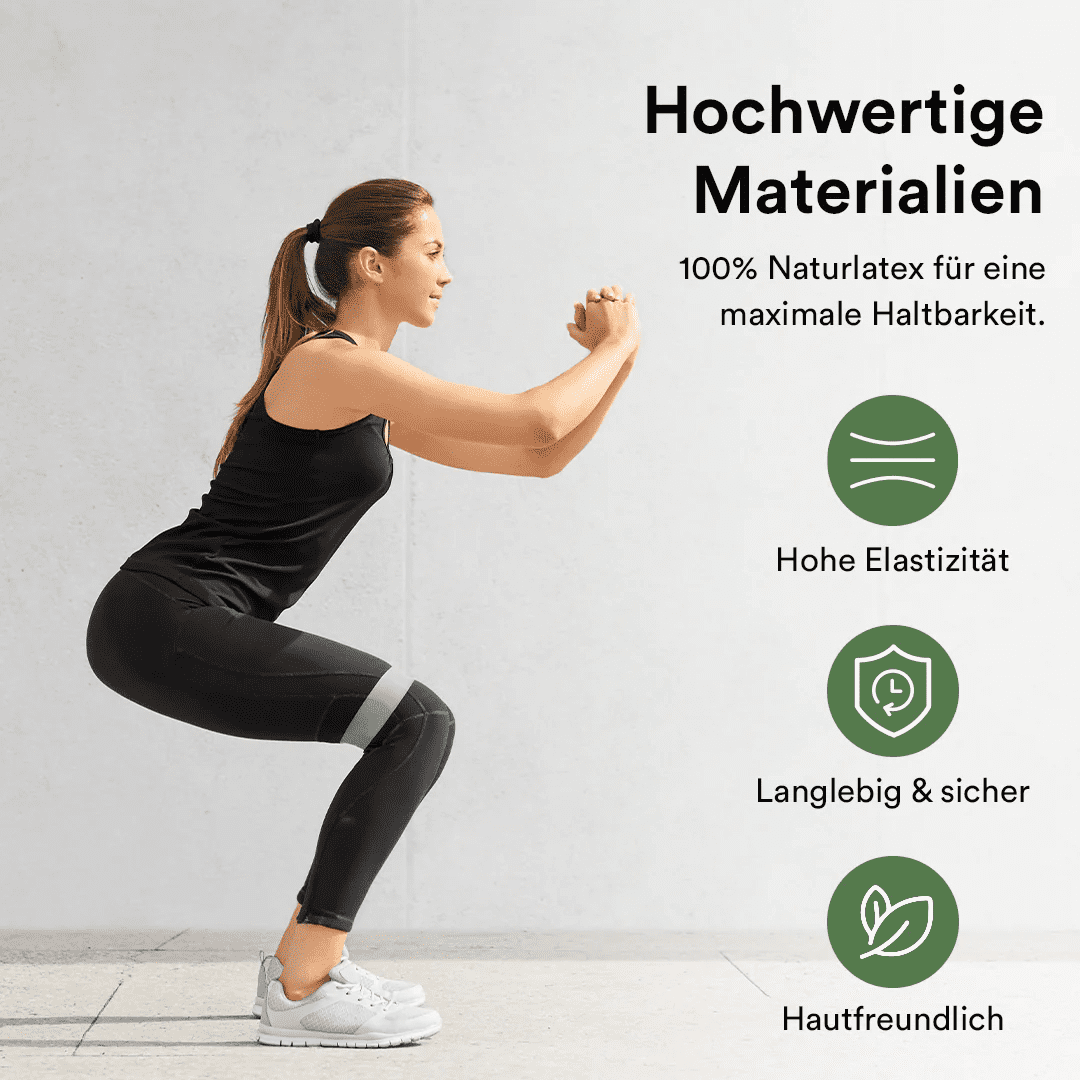 Trake za fitness izrađene su od 100% prirodnog lateksa za dugotrajan proizvod. Lateks kod nekih ljudi može izazvati alergijske reakcije. Potražite liječničku pomoć pri prvim znakovima alergijske reakcije.