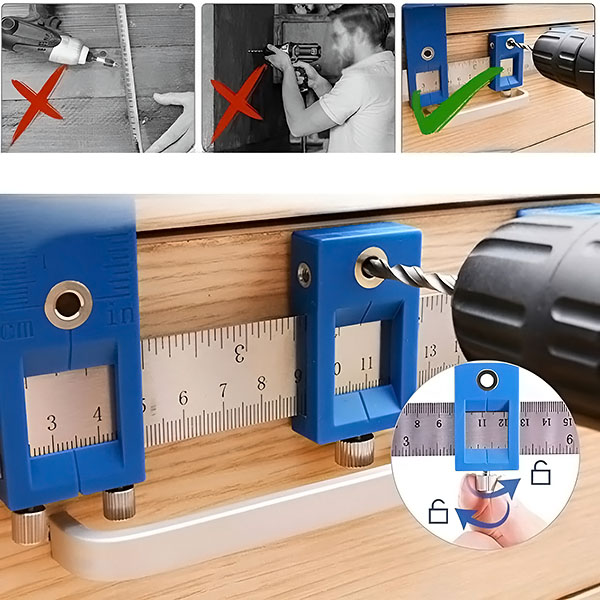 S podesivim ravnalom koji omogućava brza mjerenja i jednostavna podešavanja, lako možete postaviti točke bušenja. Bilo da radite s drvetom, metalom ili plastikom, klizni markeri i milimetarska ljestvica olakšavaju postavljanje.