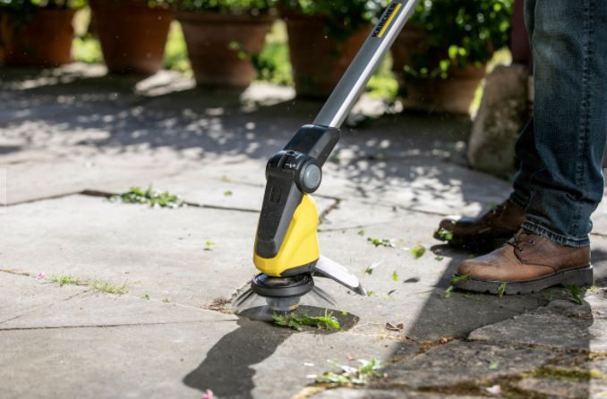 WRE 18–55 sredstvo za uklanjanje korova s rotirajućom glavom za čišćenje tvrtke Kärcher. Dostiže 2.300 – 2.800 o / min. Promjer četke 180 mm. Napon akumulatora 18 V. Sigurnosna sklopka. Viseće oko. Teleskopska šipka od aluminijskog materijala. Zaštita od prskanja vode Baterija nije uključena u paket Težina 2,9 kg.