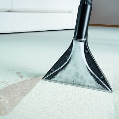 Usisavač možete upotrebljavati kao mokro/suhi usisavač. Usisavač pušta vodu pod pritiskom duboko u tepih te ju nato zajedno s prljavštinom usisa van. Odstranjuje masnoću, neugodne mirise i prljavštinu. Zajedno s deterdžentima PL Kärcher SE 5100 temeljito očisti sve otvore.