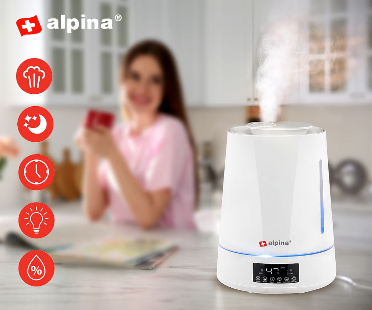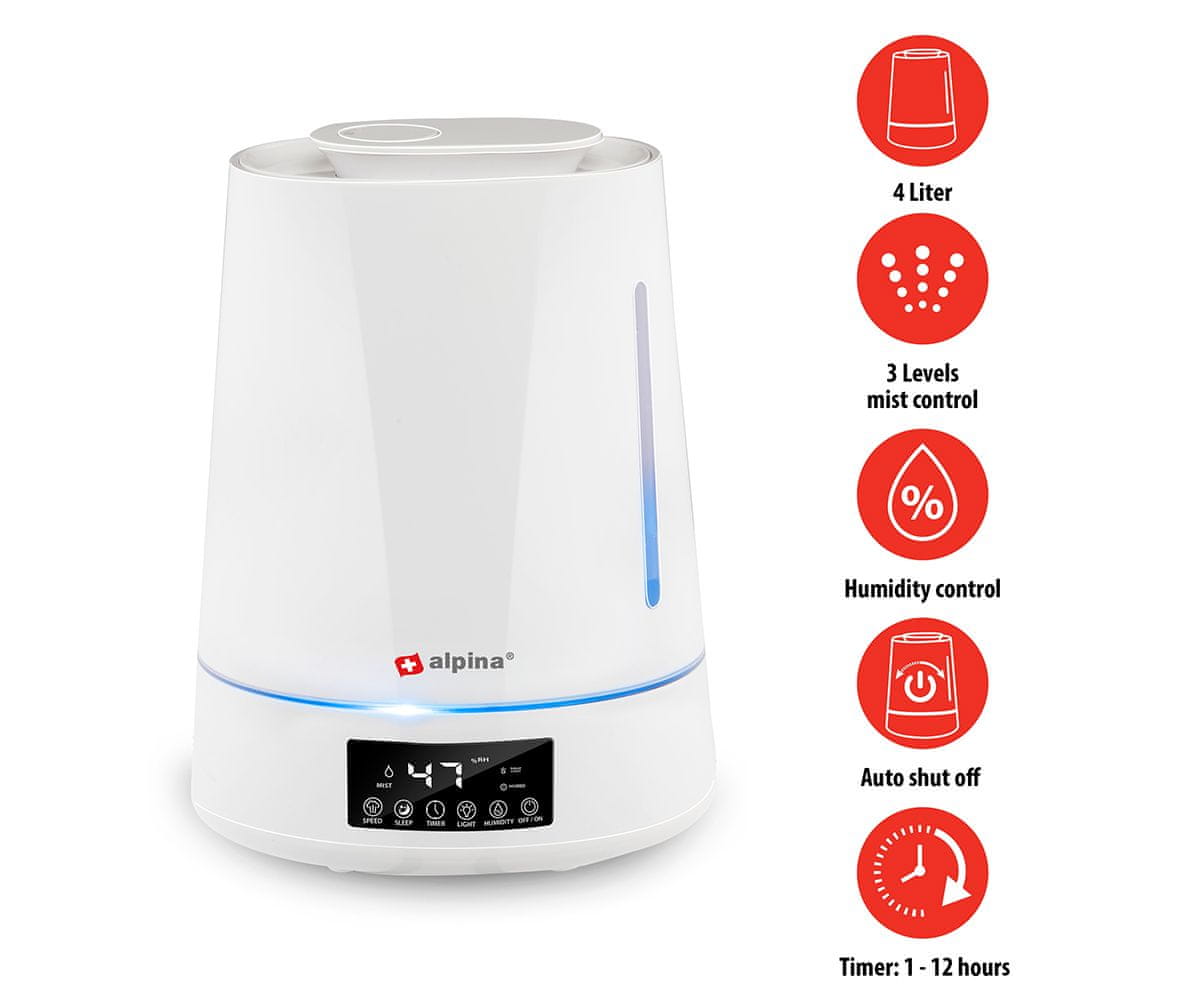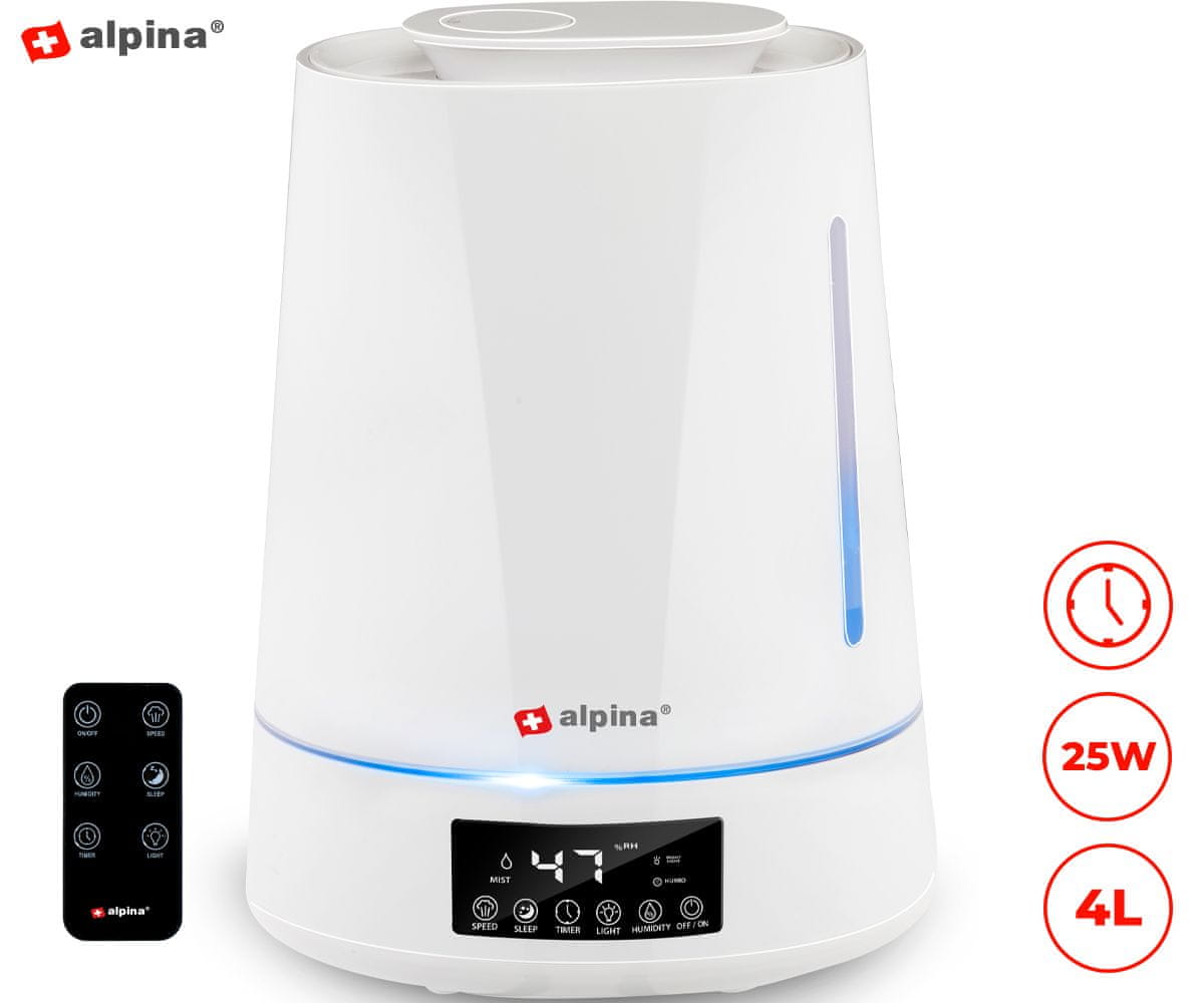 Alpina ovlaživač zraka, 4 L, timer, LED rasvjeta, daljinski upravljač