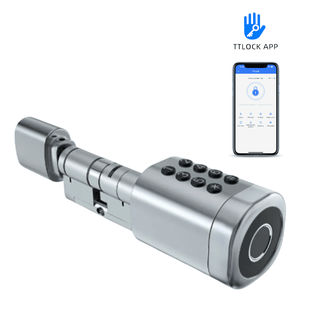 Bluetooth / WiFi elektronički uložak, pogodan za unutarnju i vanjsku upotrebu, upravljanje putem TTlock aplikacije, 5 opcija otključavanja (ključ, otisak prsta, numerički kod, čip kartica, mobitel), preporučena debljina vrata (uključujući okove) 60 mm-120 mm, baterije 2 x CR123A, srebrne boje.