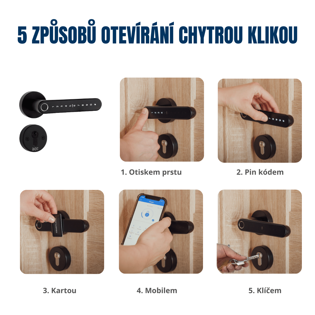 5 načina otključavanja: mobitelom, PIN-om, otiskom prsta, karticom ili klasičnim ključem