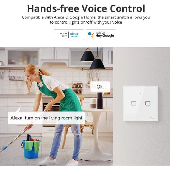 SONOFF pametni zidni prekidač Wi-Fi + RF433, daljinsko uključivanje/isključivanje, induktivni zaslon osjetljiv na dodir, podržan aplikacijom, LAN upravljanje, sinkronizacija statusa, tajmer, dijeljenje kontrole, pametne scene, glasovna kontrola s Amazon Alexom, Google Home i IFTTT.