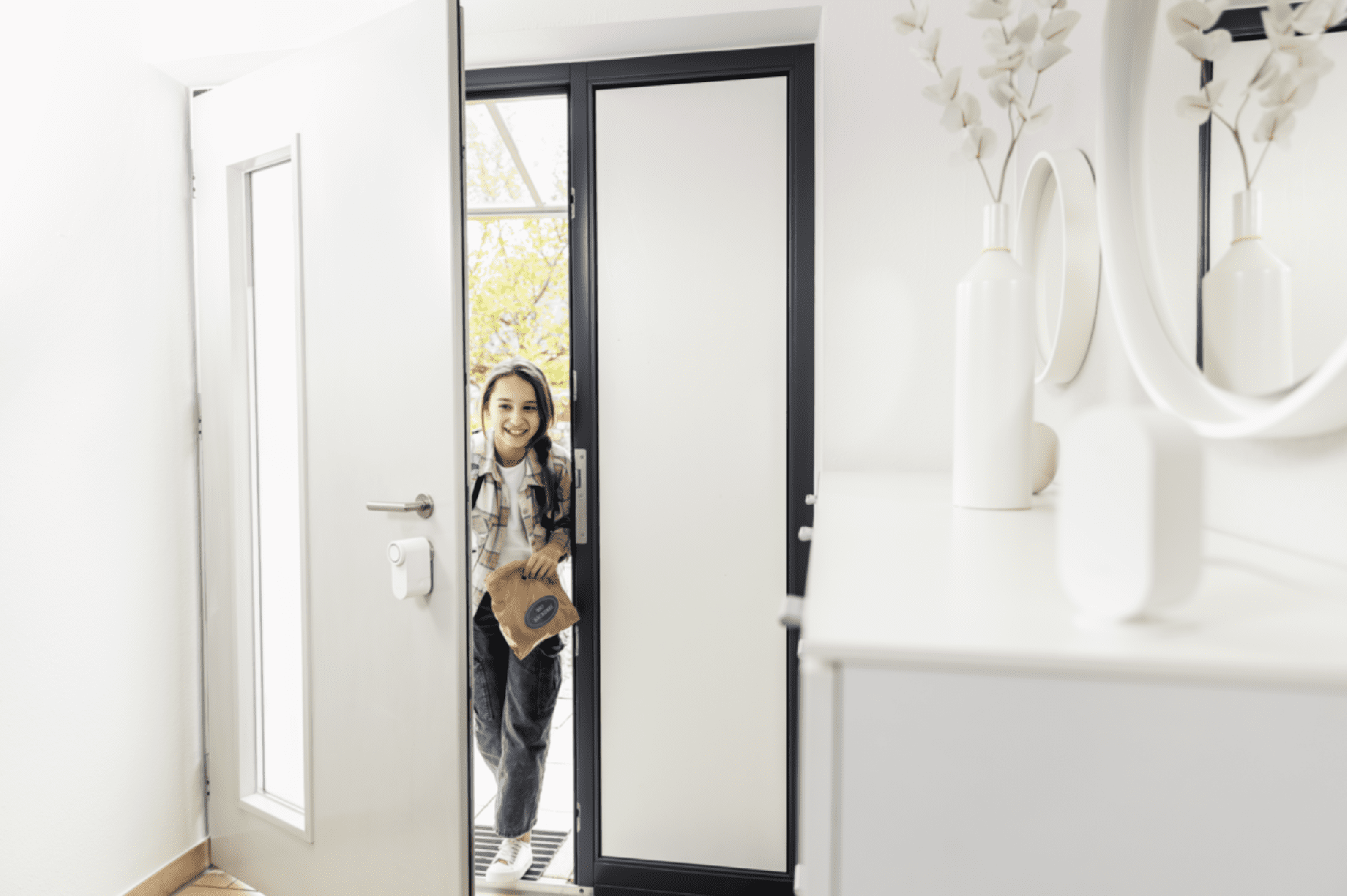 Ova pametna motorna brava omogućuje otvaranje ulaznih vrata jednim dodirom, bez potrebe za ključem – dovoljan je vaš pametni telefon. Uz to, u aplikaciji ABUS ONE možete postaviti automatsko otključavanje kada se ovlašteni korisnik približi na unaprijed određenu udaljenost. Instalacija je brza i jednostavna – brava se montira na unutarnju stranu vrata, a ključ ostaje u cilindru s unutarnje strane.