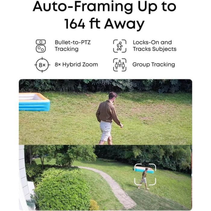 Osigurajte svoju imovinu sa dve 4K fiksne kamere za nadzor područja i dve PTZ kamere za 4K širokokutni prikaz, zajedno sa 2K PTZ kamerom s 360° okretanjem i 8× povećanjem za aktivno praćenje. AI-ISP pruža živopisnu boju noćnog vida bez potrebe za reflektorima. - Automatsko kadriranje i praćenje grupa