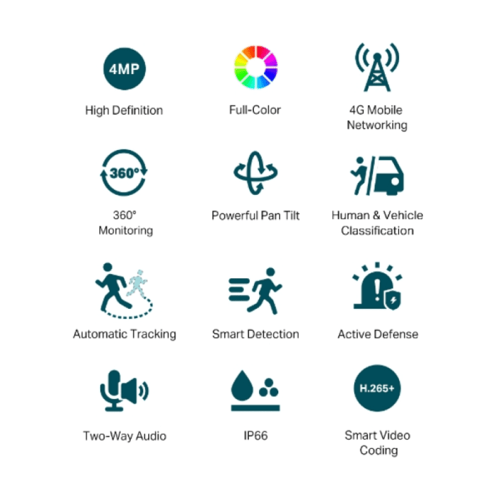 TP-Link VIGI 4MP vanjska Full-Color 4G/LTE Pan Tilt mrežna kamera (do 2560X1440 H.265+ 30fps)