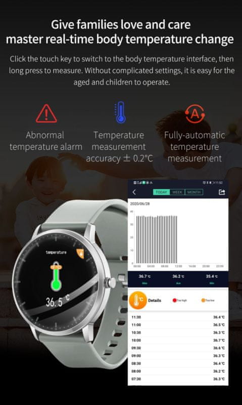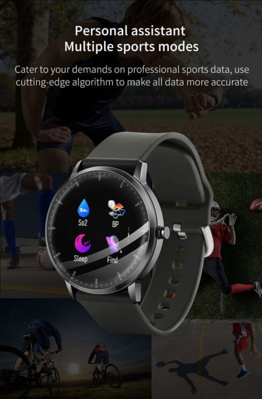 Sat također nudi mogućnost daljinskog fotografiranja, opremljen je alarmom i mogućnošću korištenja društvenih mreža poput WhatsApp-a i Facebook-a. Također može reproducirati glazbu. Sat je vodootporan s IP67 standardom, što ga čini idealnim za sportske aktivnosti ili svakodnevno nošenje. Dizajn sata je elegantan, a remen od meke silikonske gume udoban je za nošenje. Dostupno je nekoliko sportskih režima, pa možete odabrati onaj najpogodniji za vaše aktivnosti.