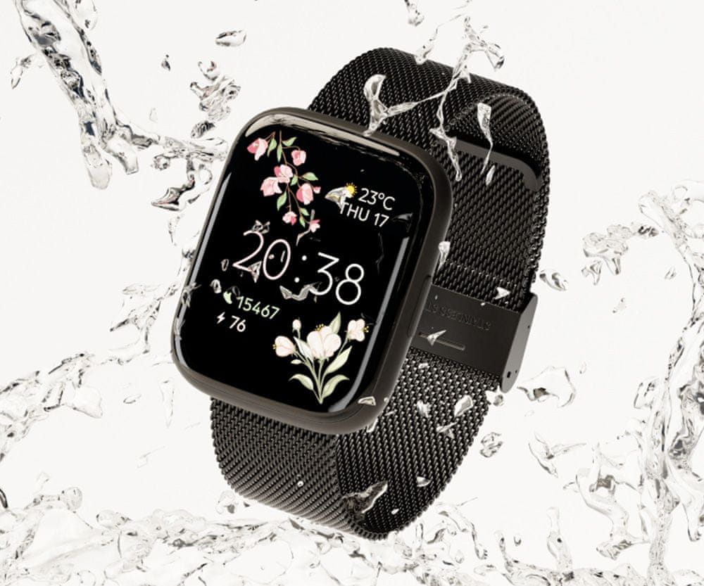 SW-330 je pametni sat za žene koji kombinira elegantan dizajn s iznimnom izdržljivošću. Unatoč tankom profilu, ima izdržljivo metalno kućište koje odolijeva svakom izazovu. Također ima IP68 vodootpornost, što osigurava zaštitu od vode, znoja i prašine. Zahvaljujući tome, uvijek ga možete nositi s sobom – bilo tijekom aktivnosti na otvorenom ili vježbanja u zatvorenom prostoru.