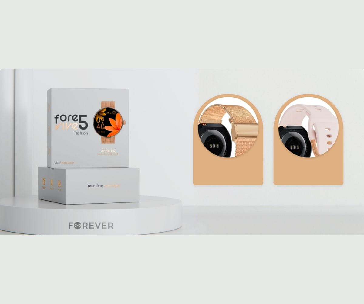 Forever ForeVive 5 SB-365 pametni sat, Bluetooth, Android+iOS, IP68, ružičasto zlato