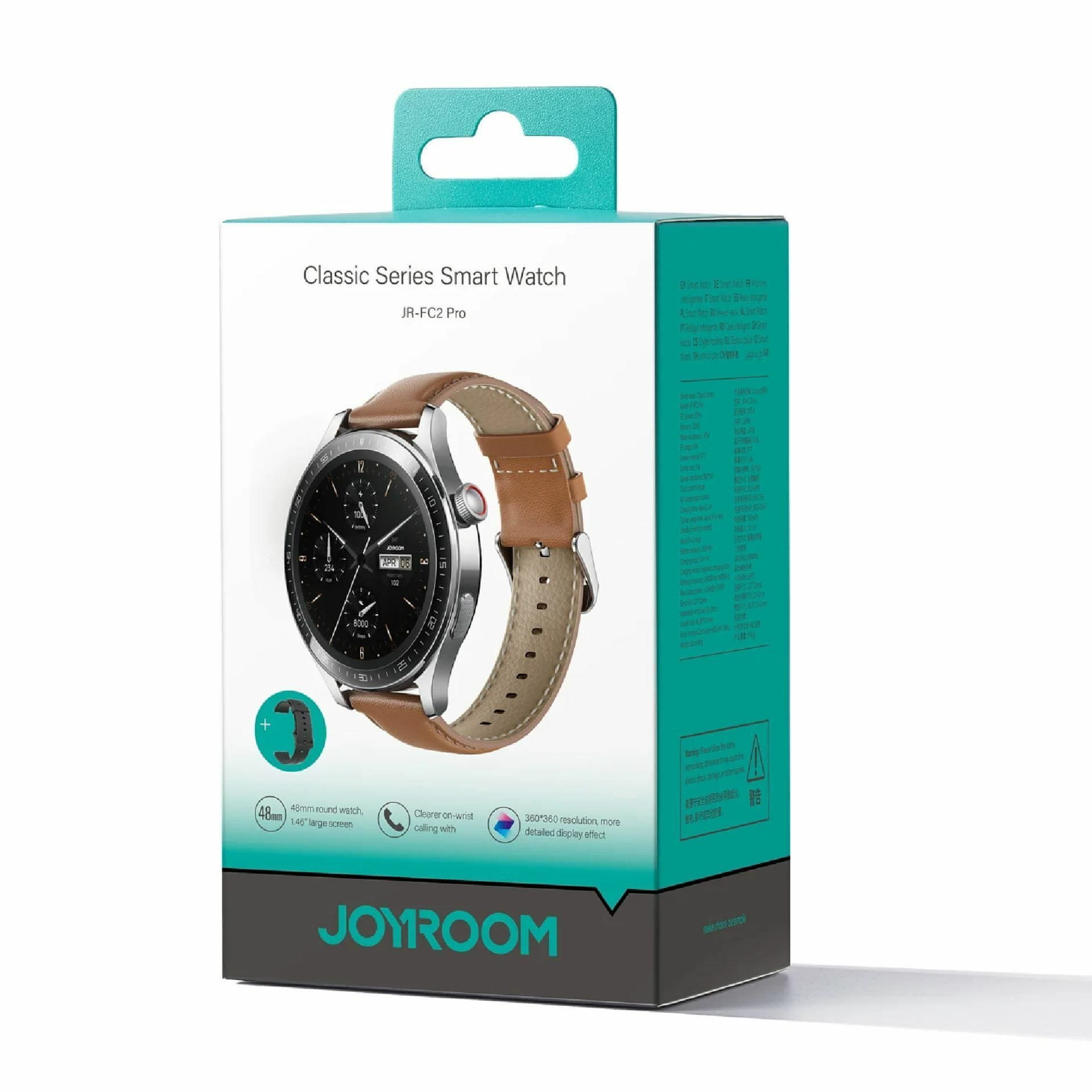 Pametni sat Joyroom Classic Series JR-FC2 Pro opremljen je velikim 1,46-inčnim zaslonom i omogućuje telefoniranje putem Bluetootha, bez vađenja telefona iz džepa. Vodootpornost, razne funkcije za praćenje zdravlja i dugi vijek trajanja baterije. Priložene narukvice – crni sportski silikon i elegantna smeđa koža.