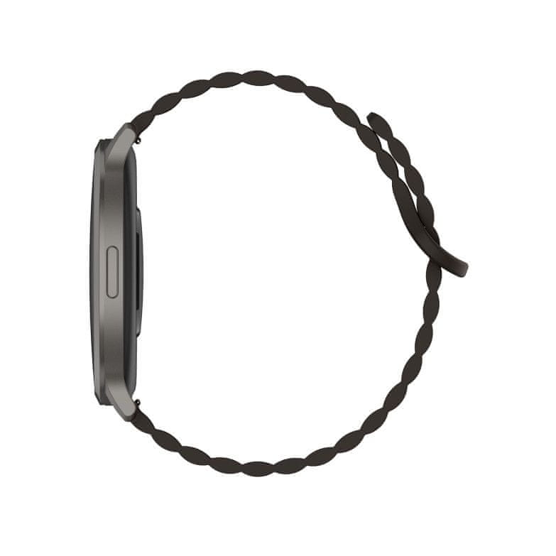 Core 3 Max ima tanak profil i lagani osjećaj koji ćete primijetiti od samog prvog trenutka. Iako je zaslon veći, sat prirodno sjedi na zapešću i ostaje udoban, bilo da ste u uredu ili na pokretu. Kućište od legure cinka pruža čvrst osjećaj, dok integrirani okvir i zaslon stvaraju čist siluetu. Bočni gumb je diskretan i praktičan, a magnetski silikonski remen omogućuje jednostavno i brzo podešavanje.