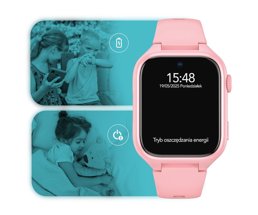 Manta Stelio Junior PRO AI 4G dječji pametni sat, GPS+WIFI+LBS lociranje, SOS tipka, roza (puderasto ružičasta)