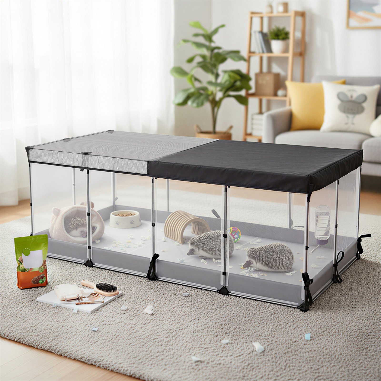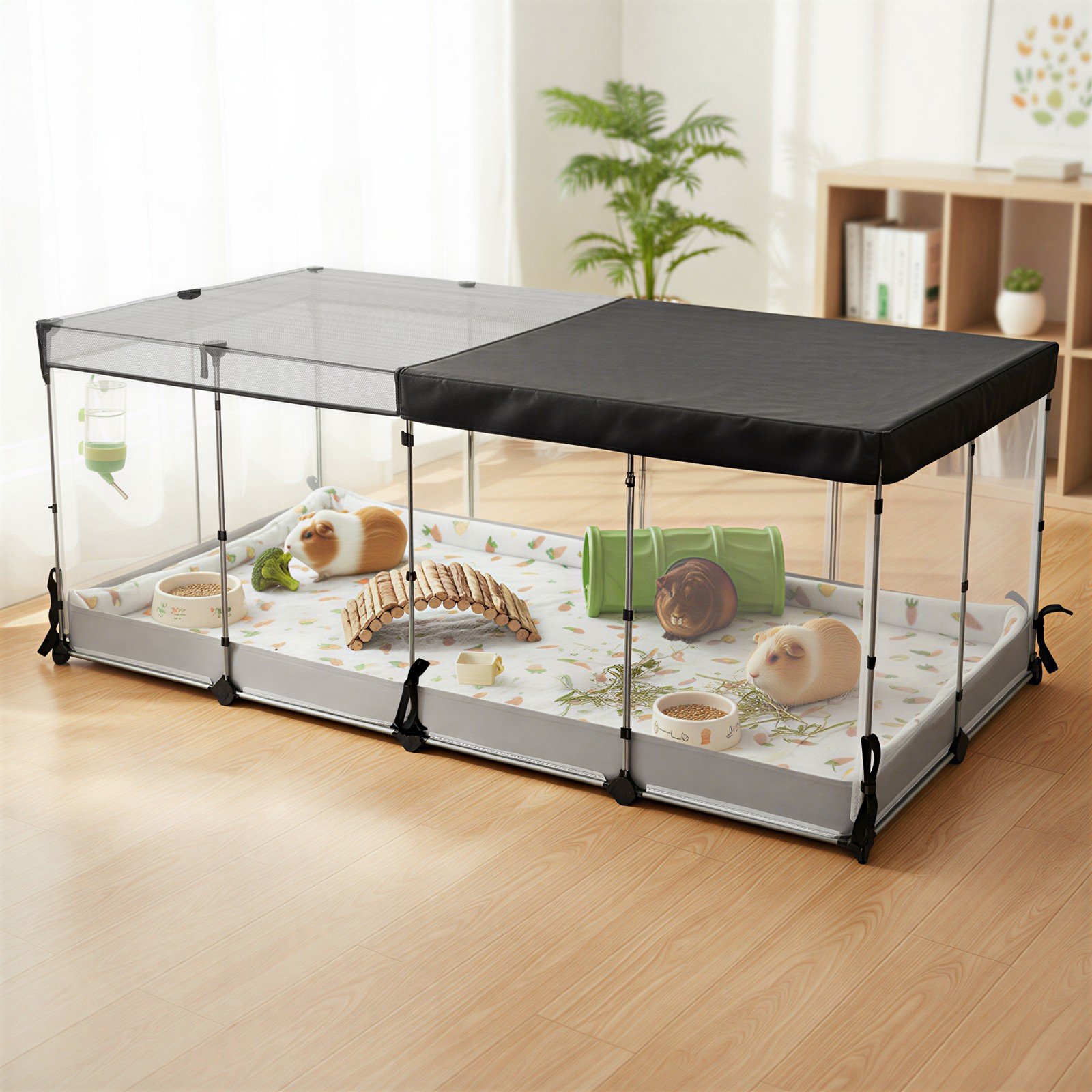 Ovaj mali kavez za životinje dizajniran je kako bi pružio siguran i udoban prostor za kućne ljubimce poput kunića zamoraca ili tvorova u zatvorenom prostoru. Njegova prozračna i vodootporna konstrukcija osigurava higijensko i lako održivo okruženje. Kavez je jednostavan za sastavljanje i nudi sigurno područje za igru i odmor vaših malih životinja.