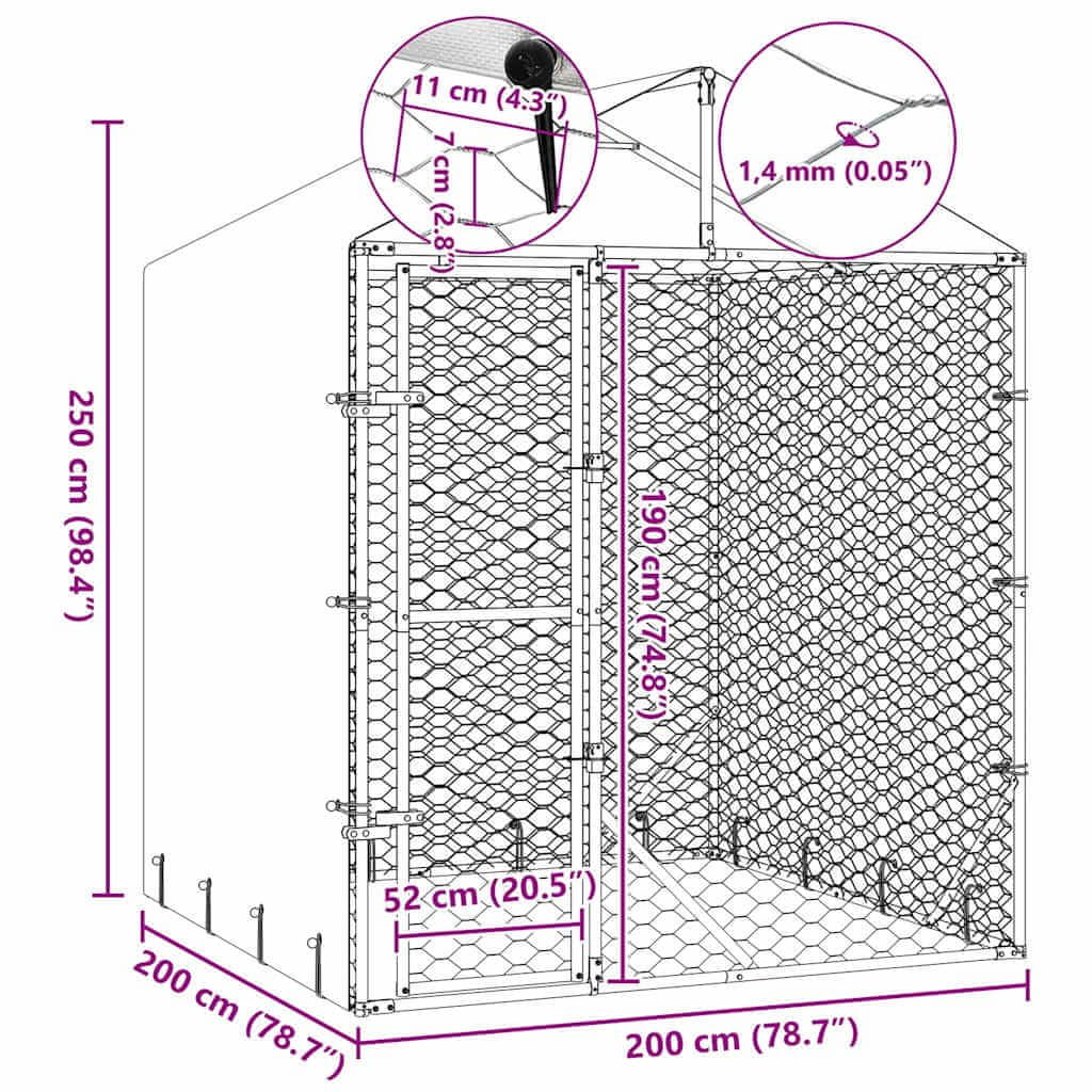 Ovaj praktični i prostrani kavez za pse s krovom savršen je izbor kao vanjska nastamba za sigurno i udobno držanje vaših životinja.
