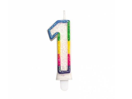 Sjajna svijeća broj „1“ s rubom u duginim bojama savršena je dekoracija za tortu.