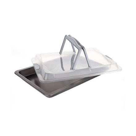 Duboki lim za pečenje dimenzija 42×29×4 cm s neprianjajućom Xynflon površinom. Praktični plastični poklopac s ručkama za spremanje pečenih jela.