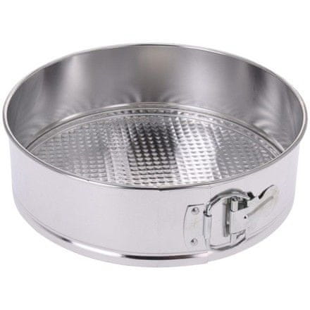 Set od 3 kalupa s odvojivim dnom, lim. 1× kvadratni 260×260×v75mm, 250 grama, 1× okrugli promjer 250×v75mm, 210 grama, 1× srce 230×230×v75mm, 180 grama. 1 x četvrtasti kalup s odvojivim dnom, aluminijski, 260×260×75mm, 1 x okrugli kalup s odvojivim dnom, 250×250×75mm, 1 x kalup s odvojivim dnom u obliku srca, 230×230×75mm.