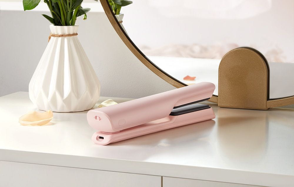 Uređaj je jednostavan za korištenje, kompaktan i zagrijava se za samo 30 sekundi, što omogućuje brzo i praktično oblikovanje kose u pokretu. Ploče obložene turmalinom i negativni ioni smanjuju statički elektricitet, čineći kosu lakšom za oblikovanje, dok snažna baterija omogućuje do 25 minuta bežične upotrebe uz 120-minutno punjenje putem USB-C priključka.