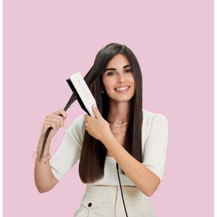 Visoko učinkovit grijač osigurava da se glačalo zagrije na radnu temperaturu u vrlo kratkom vremenu. Glačalo se prilagođava vašim željama i u tren oka se transformira u uvijač za kosu. Dizajnirano je za precizno glačanje za ured i kovrče za kuglanje. Para će povećati učinkovitost i brzinu oblikovanja kose. Osim toga, kosa će dobiti mekoću i zdrav izgled, jer je glačanje na paru vrlo nježno prema njoj. Ako ste jedna od onih osoba koje se ne sjećaju jesu li uređaj ostavile u utičnici, cijenit ćete praktičnu svjetlosnu indikaciju rada i automatsko isključivanje glačala. Bellissima pegla za kosu prikladna je za sve koji su zadovoljni savršenom frizurom stvorenom nježnim stiliziranjem.