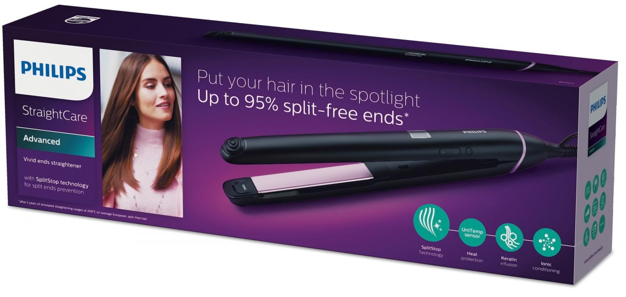 Nježno i učinkovitoPhilips BHS675/00 aparat za ravnanje kose nježno oblikuje ravnu frizuru zahvaljujući glatkim keramičkim pločicama, ionima i digitalnom regulatoru temperature. To je profesionalni aparat za ravnanje kose koji vas neće ostaviti na cjedilu i jamči 95 % manje ispucalih vrhova, te čudesne rezultate. Negativno nabijeni ioni eliminiraju statički elektricitet, regeneriraju kosu i zaglađuju vlasi radi postizanja većeg sjaja kose. Rezultat je glatka i sjajna kosa bez statičkog elektriciteta. Glatke ploče prevučene keramikom sprječavaju oštećenje kose tijekom oblikovanja uz glatko klizenje. Keramika je obogaćena keratinom kako bi pružala još bolju njegu kose. |