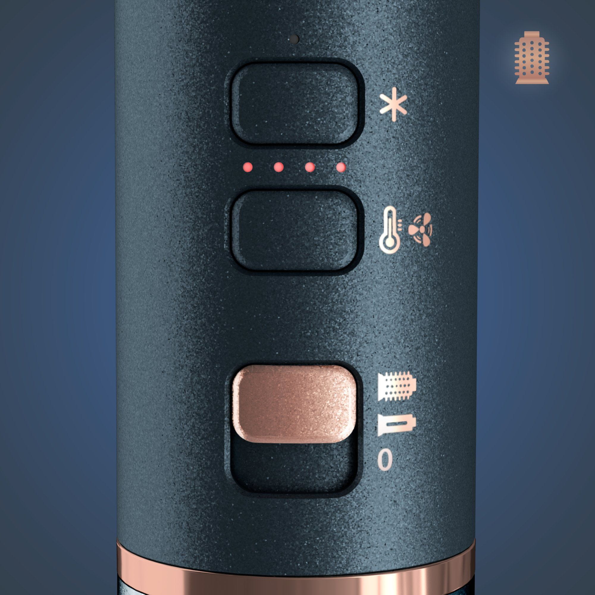 - Rotirajuća četka: četka na vrući zrak s inovativnom tehnologijom koja kombinira motor velike brzine s brzom rotacijom za dugotrajan volumen i sjajan izgled.