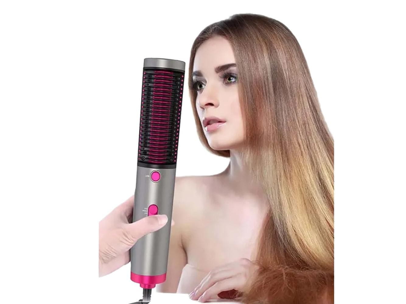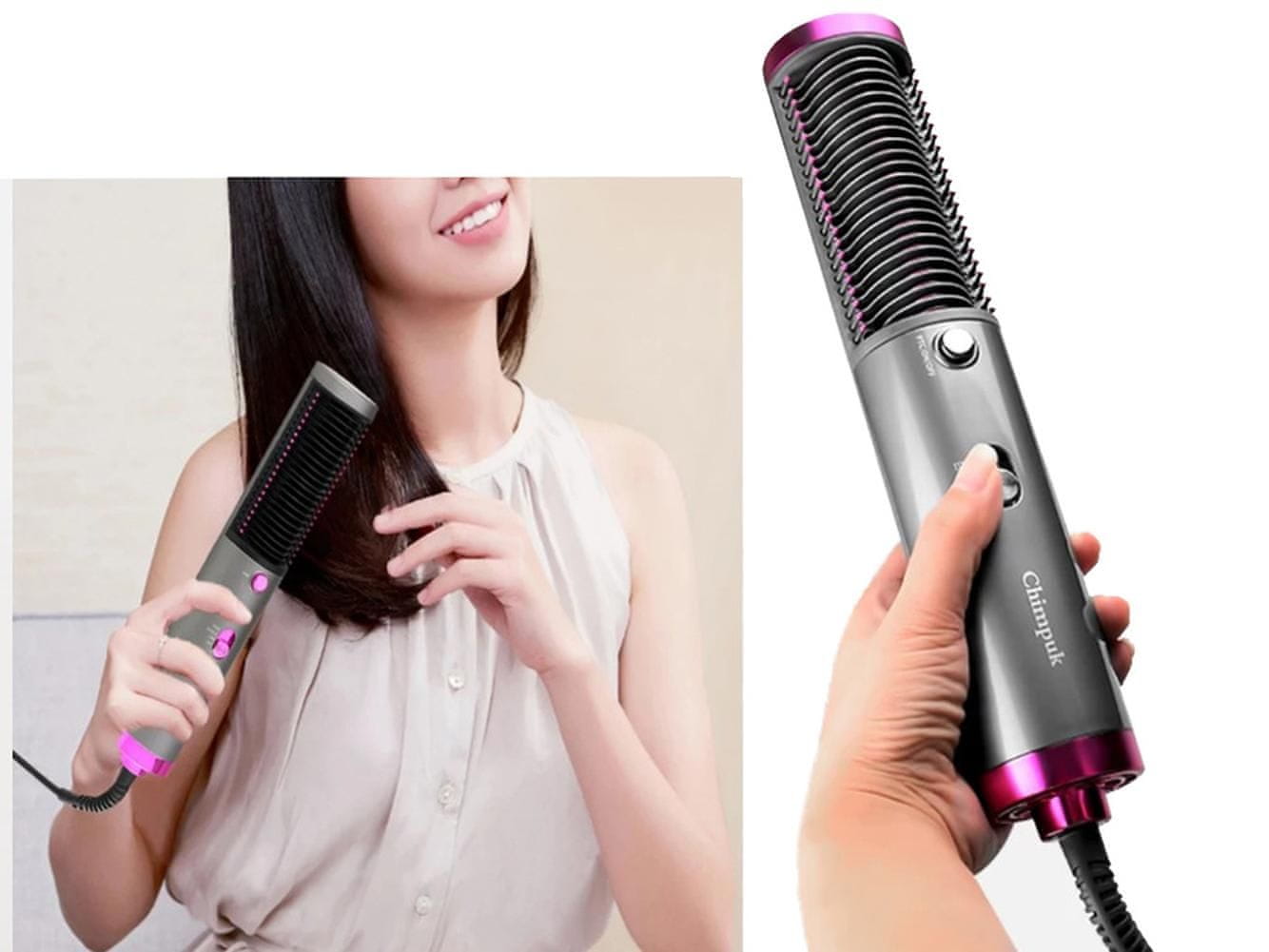 Četka za ravnanje kose savršena je kombinacija sušila za kosu, pegle i češlja za kosu. Pogodno za sve tipove kose. Pegla sa svojim prenosivim i kompaktnim dizajnom idealna je za oblikovanje kose na pozornici, za spojeve, zabave, posao i u pokretu.