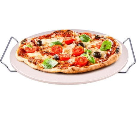 Kamen ima promjer od 33 cm i opremljen je praktičnom metalnom ručkom za jednostavno nošenje. Zahvaljujući ravnomjernoj raspodjeli topline, možete savršeno ispeći ne samo pizzu, već i kruh, pite i druge delicije od tijesta.