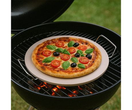 S kamenom za pizzu možete pripremiti najukusnije pizze kod kuće, izravno s roštilja ili iz pećnice. Kamen upija vlagu i osigurava hrskavu koricu, baš kao i tradicionalna kamena peć. Pogodan je za korištenje na roštilju kao i u pećnici.