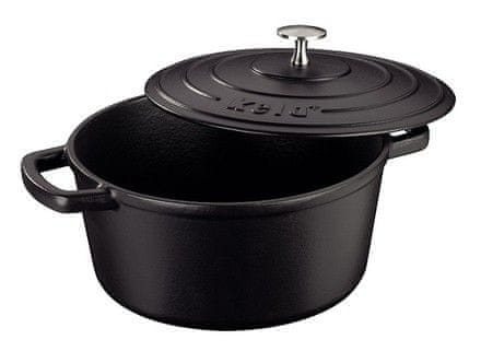 CALIDO crna posuda za pečenje od lijevanog željeza od 24 cm s poklopcem izvrsna je za pečenje jelaJedna od najvećih prednosti posude za pečenje je ta što vam uštedi puno vremena i energije. Ne morate brinuti o kuhanju na štednjaku i čuvanju jela koje se sporo kuha. Samo stavite sve sastojke u posudu za pečenje, a zatim je stavite ravno u pećnicu. Kvalitetan materijal od kojeg je izrađena posuda za pečenje – lijevano željezo, osigurava ravnomjernu raspodjelu temperature u posudi za pečenje. Posuda može izdržati visoke temperature, a zahvaljujući kvalitetnom materijalu, također se lako pere.