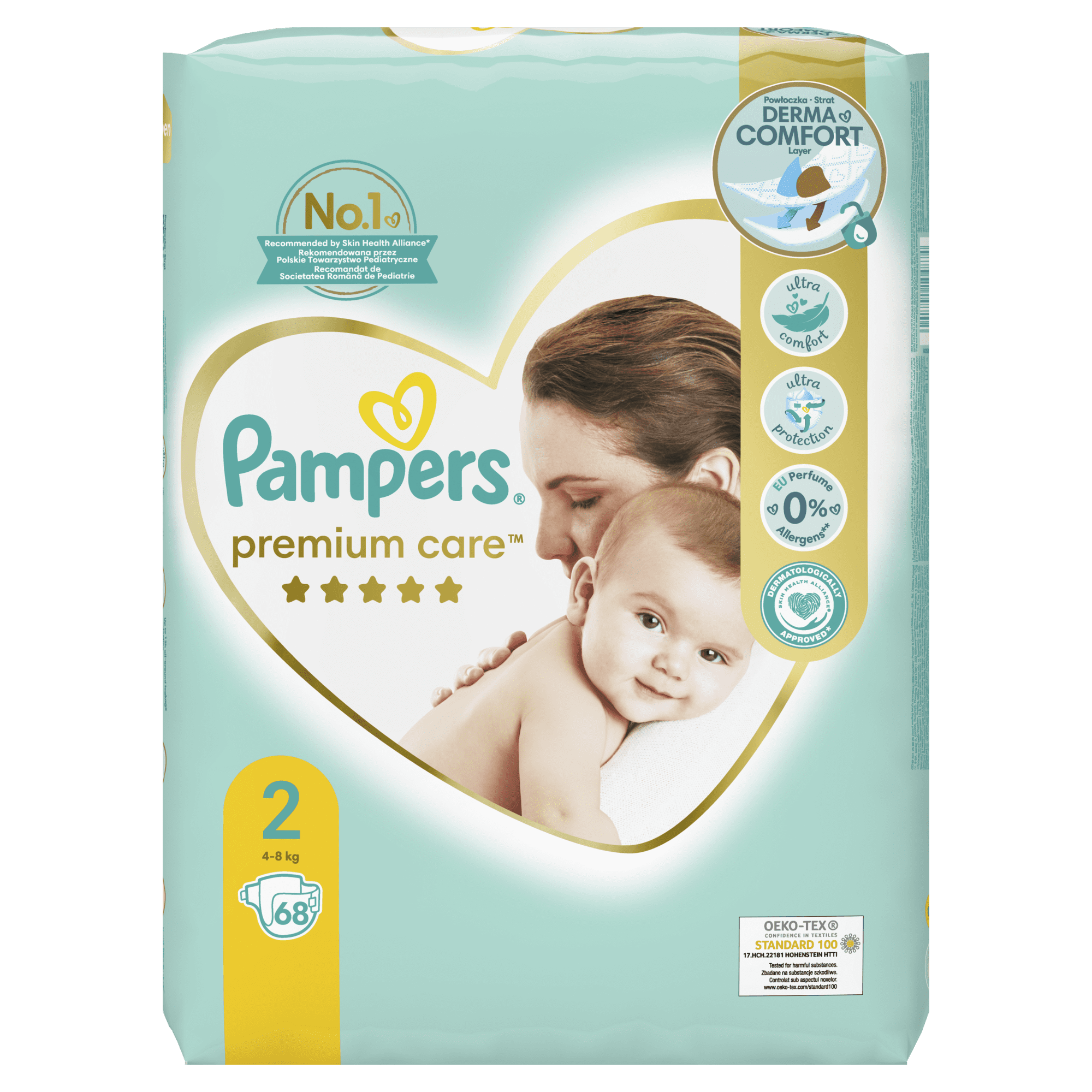 Pakiranje Pampers Premium Care 2 (Mini) sadrži 68 komada pelena, što je dovoljno za cijeli mjesec čistoće i svježine za bebu. Premium Care pelene su najviše kvalitete, budući da su ocijenjene s pet zvjezdica za kvalitetnu zaštitu kože, mekane i svilenkaste izvana i iznutra. Odlikuju ih izvrsna apsorpcija i prozračnost, što čini kožu djeteta zdravom, a dijete zadovoljnim.