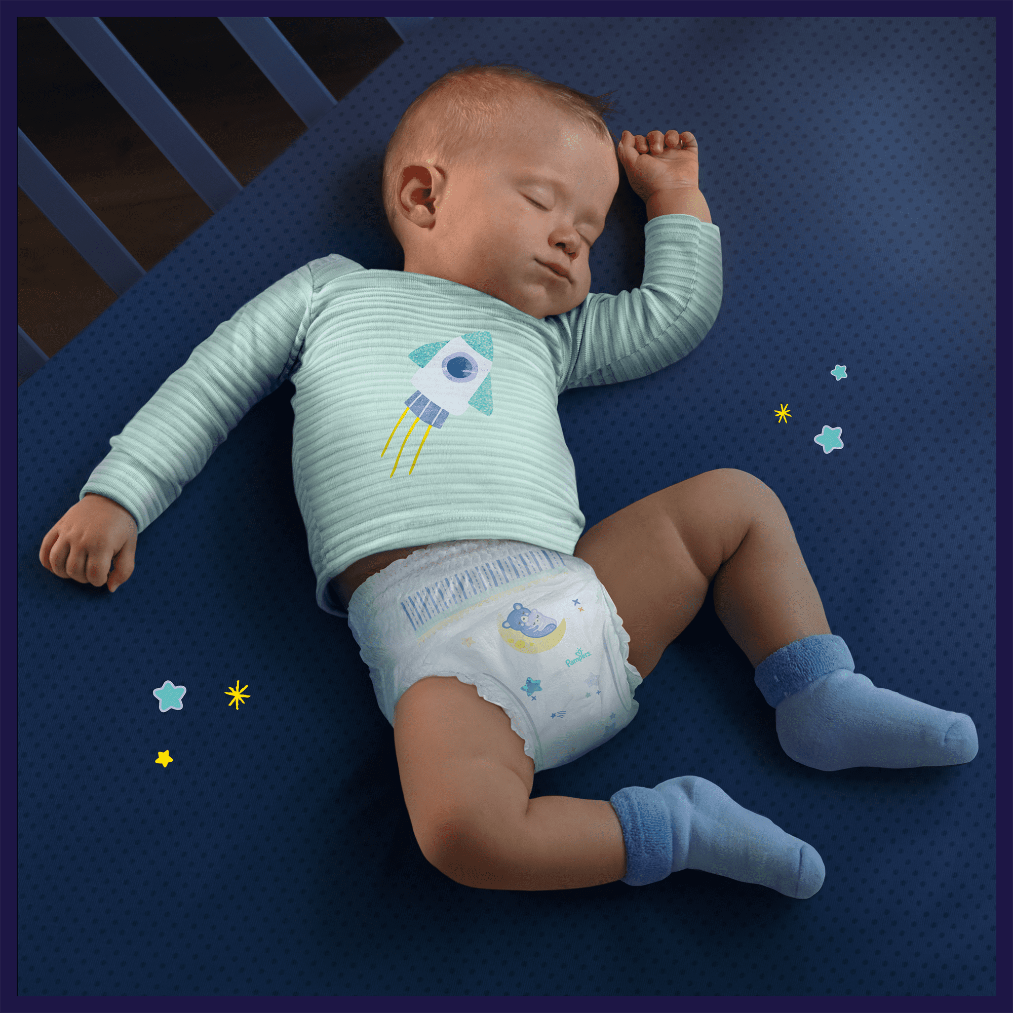 Hlače pelene Night Pants marke Pampers nude bolju zaštitu cijelu noć i tako vašoj bebi pružaju miran san. Ojačana jezgra odmah upija vlagu i održava bebinu zadnjicu suhom do 12 sati. Pelene su namijenjene djeci od 9 do 15 kg.