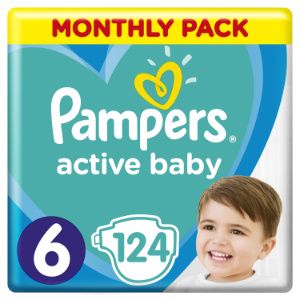 Pampers Active Baby 6 Extra Large pelene, veliko pakiranje od 56 kom. Pelene imaju male kuglice MicroPearls koje omogućavaju do 30 puta veću apsorpciju vlage od uobičajenih pelena.