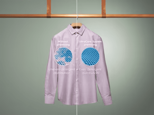 Perilica rublja opremljena je UltraCare sustavom, koji pomiješa deterdžent i omekšivač s vodom prije doziranja u bubanj, omogućujući ravnomjernu raspodjelu po rublju. Vlakna odjeće tako su bolje zaštićena, jer deterdženti počinju djelovati ranije.