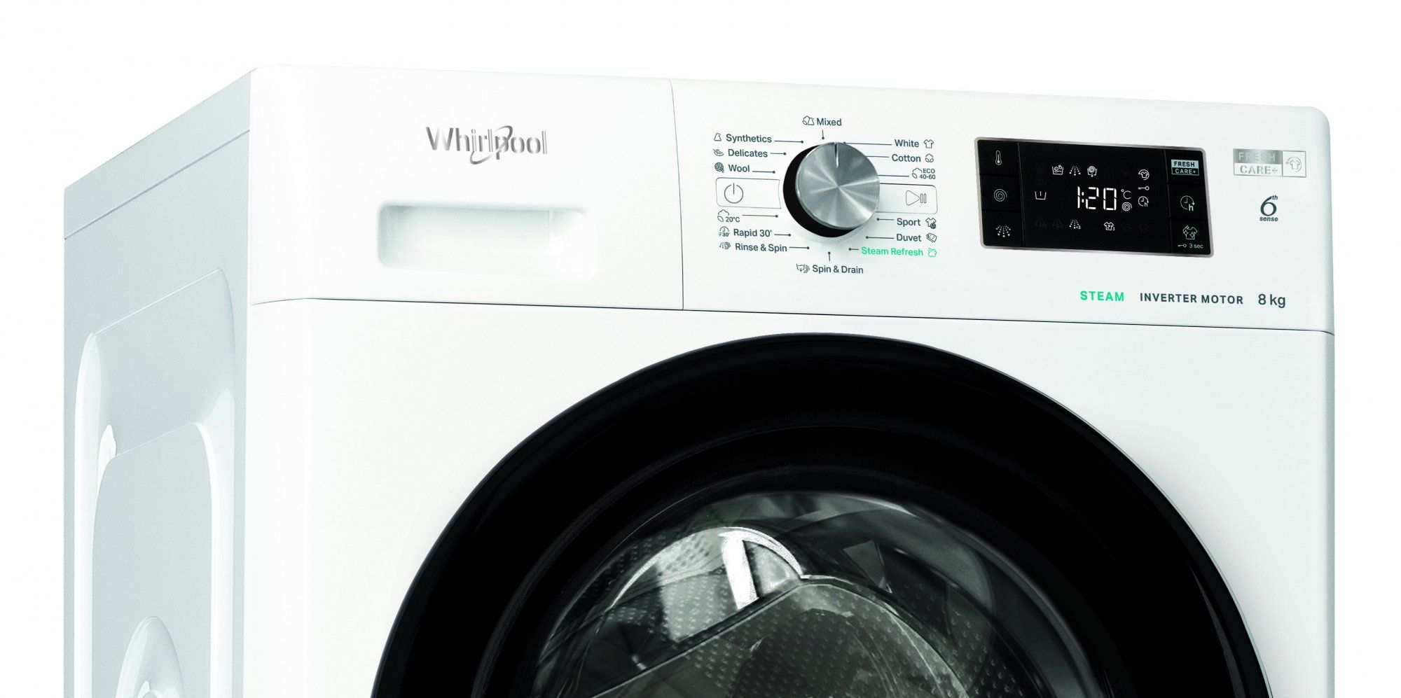 - Stroj za pranje rublja sa 6 Sense sam prepoznaje količinu rublja napunjenu na temelju odabranog programa i stupanj upijanja odgovarajuće tkanine te u skladu s tim postavlja optimalnu potrošnju vode, energije i vremena.