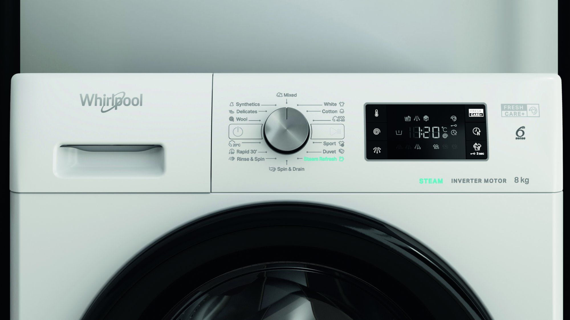 Perilica rublja u energetskoj klasi A +++ i bijela s volumenom 8 kg rublja i 14 programa Whirlpool FFB 8458 BV EE nudi inteligentnu tehnologiju 6 sense s automatskim postavljanjem svih parametara za najbolje moguće rezultate pranja.