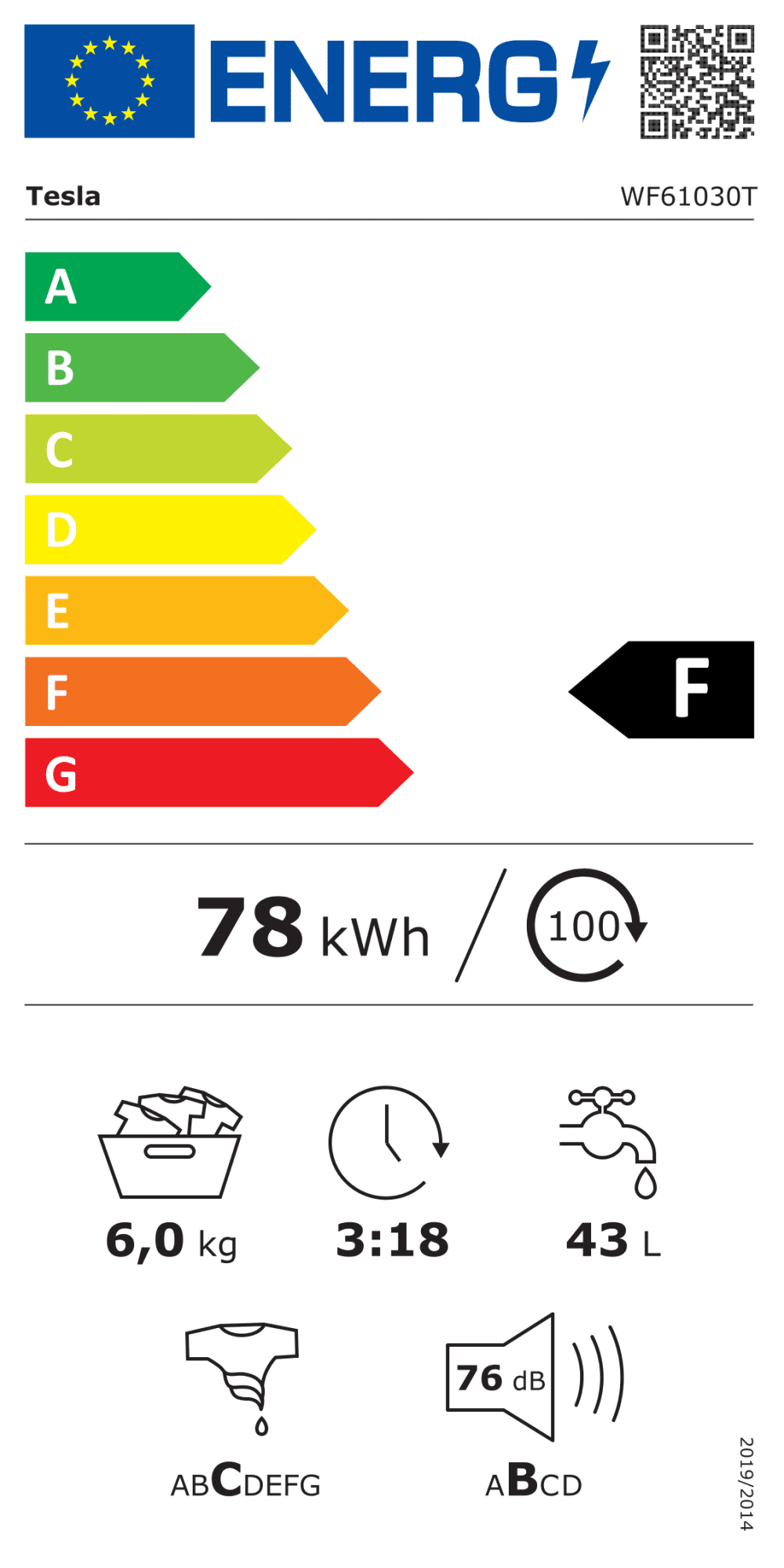 Perilica rublja Tesla WF61030T pripada energetskom razredu E, što znači da je dizajnirana imajući na umu energetsku učinkovitost i štedljivost. Iako ne doseže najvišu klasu, pruža pouzdan rad uz smanjenu potrošnju energije, što je dobro za okoliš i vaš novčanik. Korištenje energetski učinkovitih uređaja pridonosi smanjenju emisije ugljika, a istovremeno dugoročno smanjuje troškove električne energije.