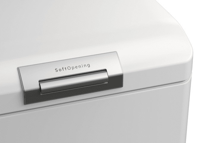 Punjenje i pražnjenje stroja je lakše i sigurnije zahvaljujući poklopcu na gumb i sustavu nježnog otvaranja.