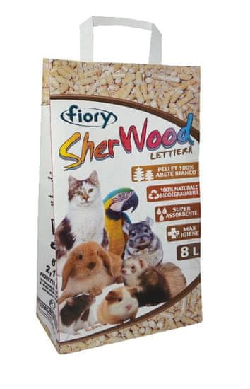 Fiory SherWoodwood peleti s mirisom limuna predstavljaju 100% prirodnu posteljinu za glodavce, mačke i ptice. Sadrže 100% prirodan posip od mljevenog drveta Colorado jele, koji je pogodan za sve vrste kaveza za male i velike glodavce i ptice, a zahvaljujući vrlo visokoj (+300%) upijanju može se koristiti i za mačje zahode. Izvrsno zadržava neugodne mirise i sprječava širenje mirisa po prostoriji. Sastoji se od 100% biorazgradivih prirodnih biljnih vlakana, pa se može odložiti u kompost. Posip ne zaprašuje, tako da ne iritira dišne puteve kućnih ljubimaca. Peleti se ne lijepe za noge i posljedično se ne šire po prostoriji.