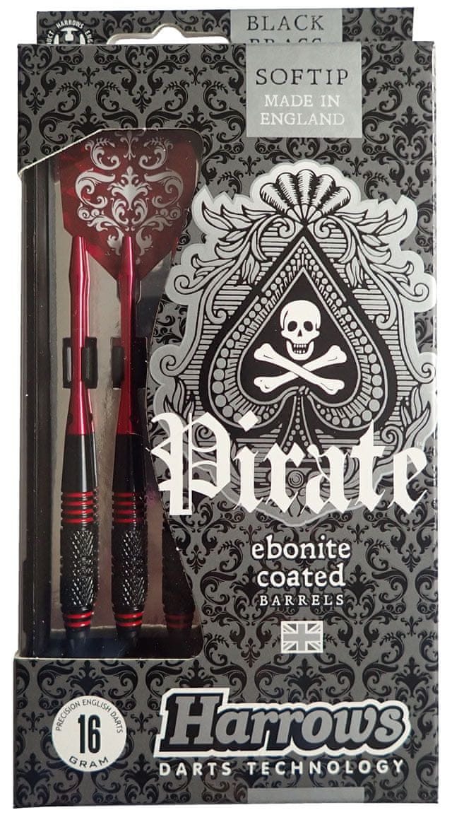Pikado strelice s plastičnim vrhom „HARROWS“ SOFT PiRATE 16 g. Grupa pikado strelica Pirate s prekrasno obojenim mesinganim tijelima idealna je za svestranog igrača. Kvalitetni pikado od renomiranog proizvođača. Pakiranje od 3 komada u kutiji s priborom i rezervnim dijelovima. Materijal: mesing