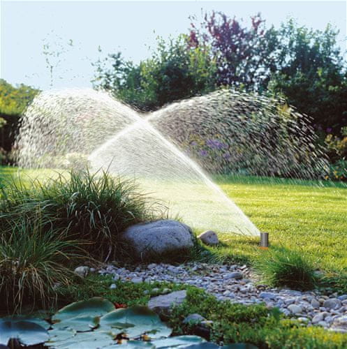 Gardena T 200 (8203)Pop-up turboraspršivač Gardena T 200 (8203) je dio sustava raspršivača GARDENA – idealan je za navodnjavanje travnatih površina do 200 m². Može se kombinirati s pop-up turboraspršivačima T 100 (8201) i T 380 (8205), te oscilirajućim pop-up raspršivačem OS 140 (8220). Doseg rada raspršivača moguće je namjestiti između 5 i 8 m. Područje navodnjavanja moguće je prilagoditi u rasponu između 25 i 360°. Moguće je navodnjavati površine u rasponu od vrlo malih područja do punog kruga. Zahvaljujući funkciji memoriranja položaja, raspršivač se automatski vraća na prethodno namješteno područje navodnjavanja, čak i kada se glava raspršivača nehotično okrene. Četiri mlaznice omogućuju fleksibilno navodnjavanje: za pojedina područja navodnjavanja moguće je postaviti različite brzine protoka vode. To je posebno važno za ravnomjerno navodnjavanje uz kombiniranu upotrebu raspršivača za različito postavljena područja navodnjavanja. Ugrađeni filtar za prljavštinu omogućuje neometan rad. Postavljanjem ispusnog ventila (2760) sustav raspršivača postaje otporan na smrzavanje. Priključivanje se obavlja putem ženskog navoja 12 mm (1/2"). |