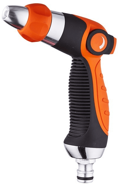 Pištolj za prskanje je kompaktan i praktičan uređaj za zalijevanje. Može se pohvaliti čvrstim metalnim tijelom koje je prekriveno neklizajućom gumom za dobro držanje. Omogućuje mogućnost podešavanja protoka i načina prskanja (od vodenog tuša do mlaza). Maksimalni protok vode je 12 l/min pri tlaku od 4 bara.