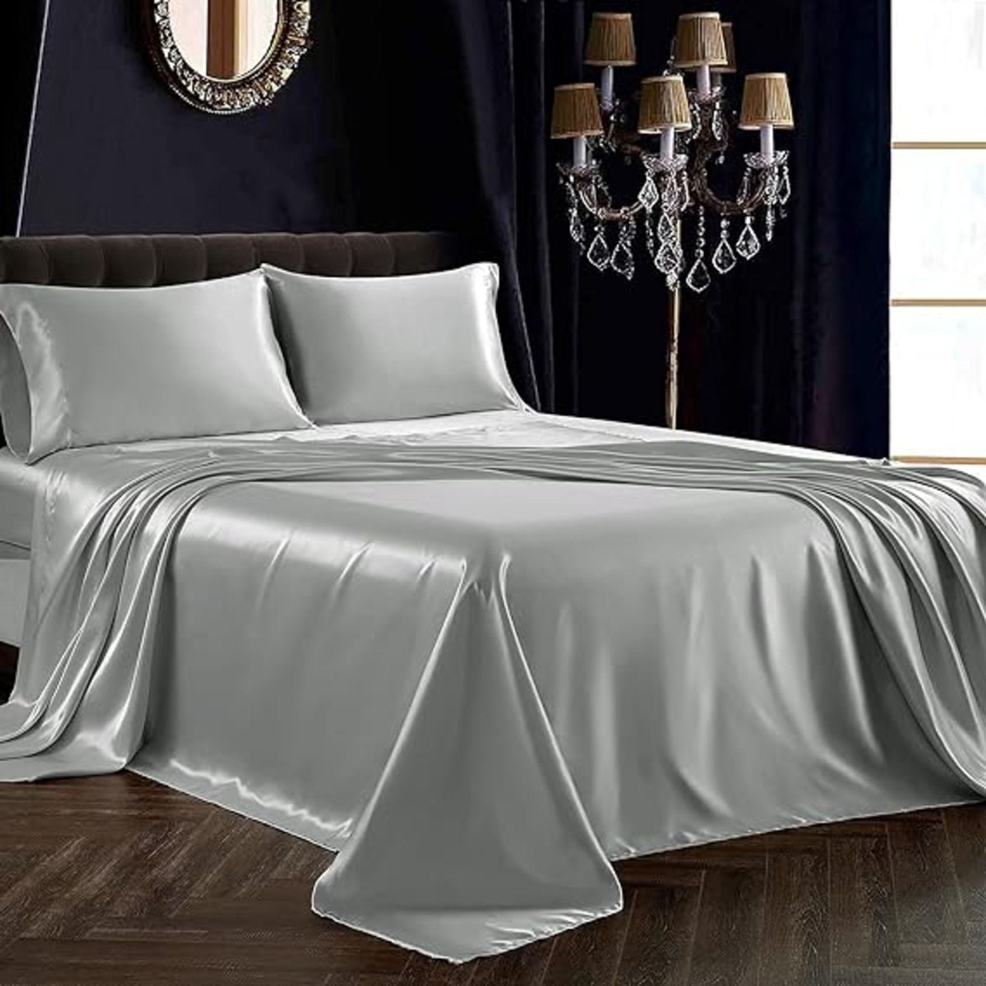 HOME & MARKER® Napenjalna rjuha, gladka i otporna na vlagu, imitacija svile, uključuje 1 navlaku i 2 jastučnice (svijetlo siva, 180x200) | SILKYFIT