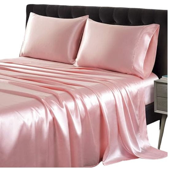 HOME & MARKER® Napenjalna rjuha, gladka i otporna na vlagu, imitacija svile, uključuje 1 navlaku i 2 jastučnice (roza, 150x200) | SILKYFIT