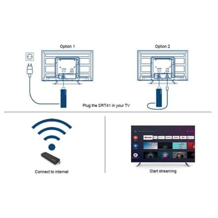 Minijaturni multimedijski player s Google TV sustavom (Android 11) podržava 4K Ultra HD rezoluciju, HEVC H.265 kodek i HDR10+ format za savršene slike i realističnije boje. Četverojezgreni procesor, grafički čip Mali-G31, 2 GB RAM-a i 8 GB velike interne memorije osiguravaju agilnost cijelog uređaja. Jednostavno spojite player na televizor putem HDMI-ja i sve je spremno za korištenje. Za pristup internetu koristi bežičnu Wi-Fi vezu (802.11 a/b/g/n/ac), koju nadopunjuje Bluetooth 5.0. Pomoću Google TV-a možete jednostavno reproducirati online sadržaj s usluga kao što su Netflix, YouTube, Disney+, Prime Video, O2 TV i druge. Naravno, možete instalirati aplikacije s Google Playa. Ugrađena Chromecast tehnologija omogućuje vam praktično strujanje sadržaja s pametnih telefona i tableta. Paket također uključuje daljinski upravljač s integriranim mikrofonom i podrškom za Google Assistant.